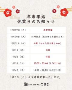 31日(水):おせちの引渡しのみ(通常営業はお休みです)