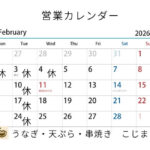 2026年1月26日 / 最終更新日 : 2026年1月26日 fl_admin お知らせ 2月の営業カレンダーのお知らせ いつも当店をご利用いただき誠にありがとうございます。 2月の営業カレンダーをお知らせいたします。 2/2(月)、3(火)、4(水)、10(火)、17(火)、24(火) 休業 2月は通常の定休日(火曜日)に加え、2日、4日 […]